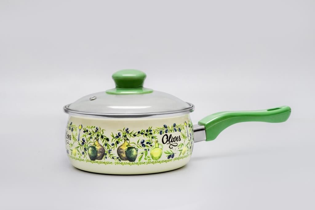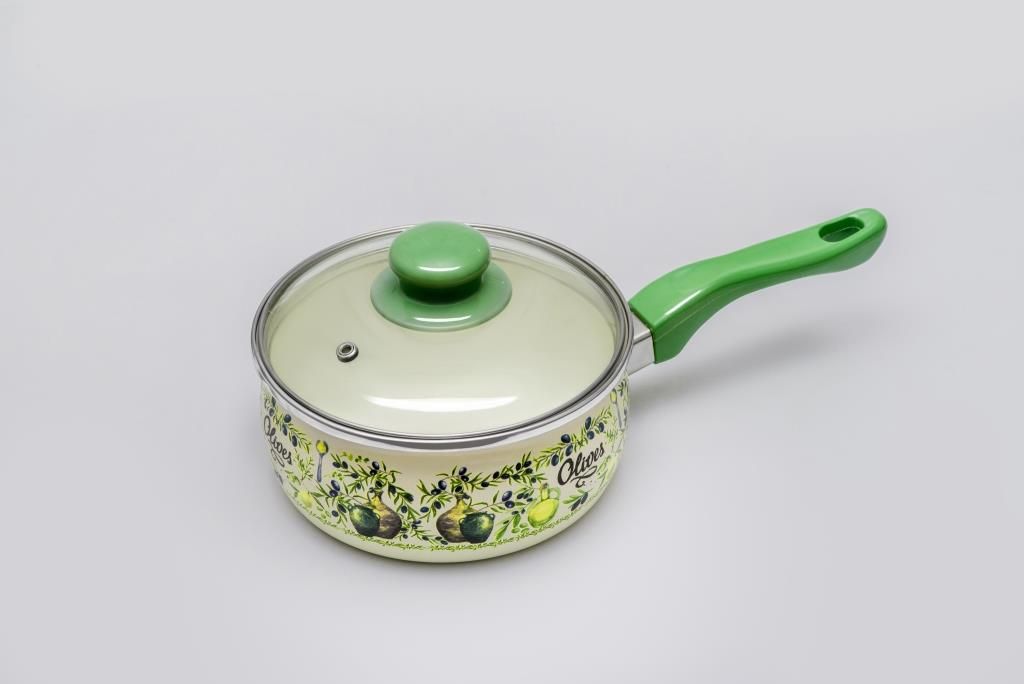 Ковш эмалированный со стеклянной крышкой из коллекции "Олива", 1.65 л