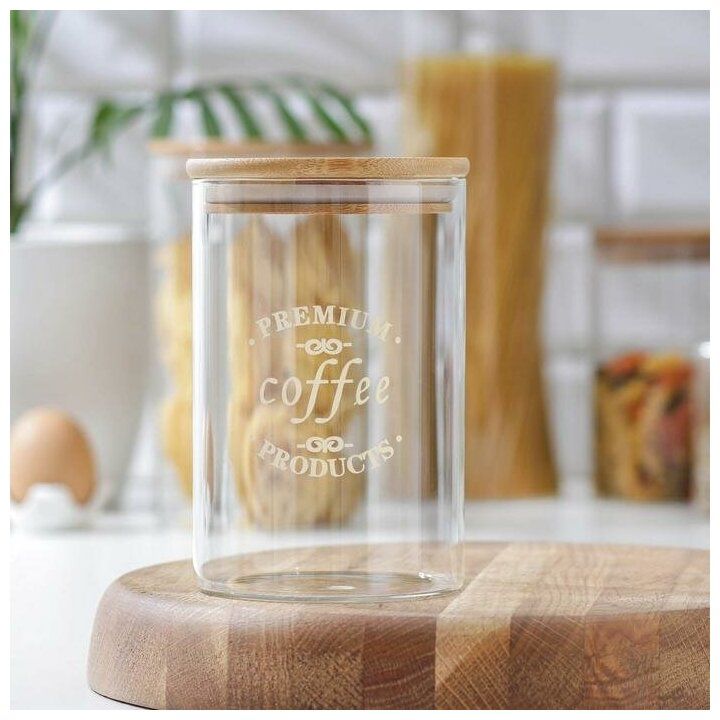 Банку для сыпучих продуктов можно использовать для хранения кофе и других сухих припасов. Она подходит для многократного использования. Стекло не впитывает запахов и вкусов и не мутнеет со временем.