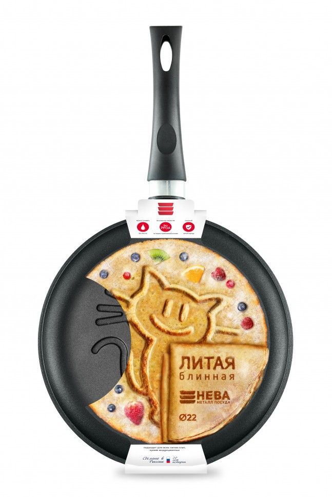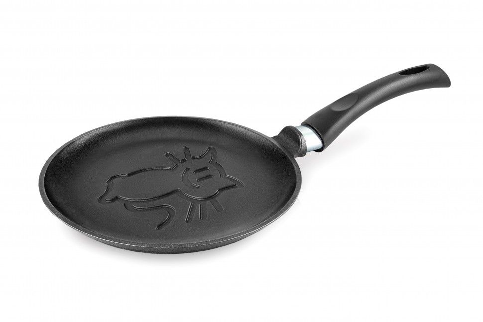 Блинная сковорода имеет низкий борт и удобную ручку, благодаря чему легко переворачивать и снимать блины. Утолщенное дно обеспечивает особые термоаккумулирующие свойства: блин равномерно пропекается по всей толщине и красиво румянится с обеих сторон. Благодаря антипригарному покрытию блины всегда легко снимаются со сковороды и не пригорают, даже при выпекании без использования масла.