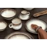 Коллекция посуды Nuances - успешная работа дизайнеров Easy Life с реактивной глазурью. Сложная технология производства такого покрытия подразумевает неповторяемый результат, но в данном случае все изделия смотрятся практически одинаково, с лёгким, едва уловимым отличием. Добиться такого результата позволяет простая форма изделий, на которой реактивная глазурь нанесена по краю посуды. Два оттенка (от англ. Nuances - оттенки), коричневый и голубой часто встречаются в природе - небо, земля, море и горы. .
