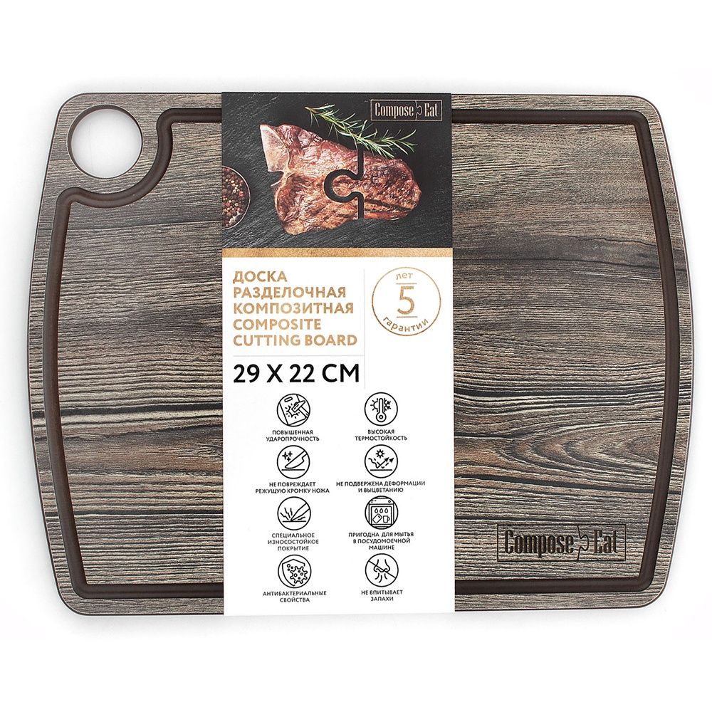 Доска разделочная, c желобом ComposeEat 29х22см, дуб мореный, Fashion
