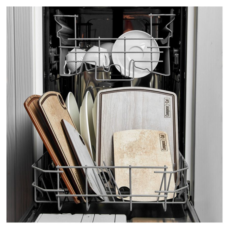 От агрессивного воздействия остро заточенного лезвия кухонного ножа их защищает особый материал, обладающий повышенной степенью прочности и умеренной упругости. Доски ComposeEat берегут режущую кромку ножей, не впитывают запахи продуктов и обладают повышенной ударопрочностью. Не требуют специального ухода, их можно мыть в посудомоечной машине.