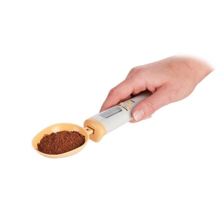 Довешивание с возможностью постепенного взвешивания нескольких продуктов в ложке одновременно. Точные весы, с точностью 0,1 г / 0,5 г. Съемная ложка из прочного пластика пригодна для мытья в посудомоечной машине, рукоятка непригодна для мытья в посудомоечной машине.
