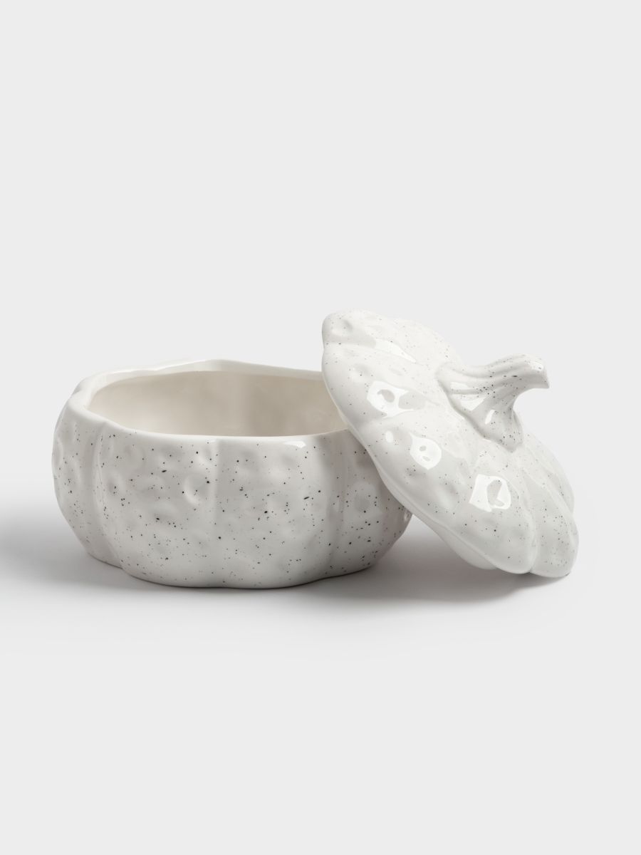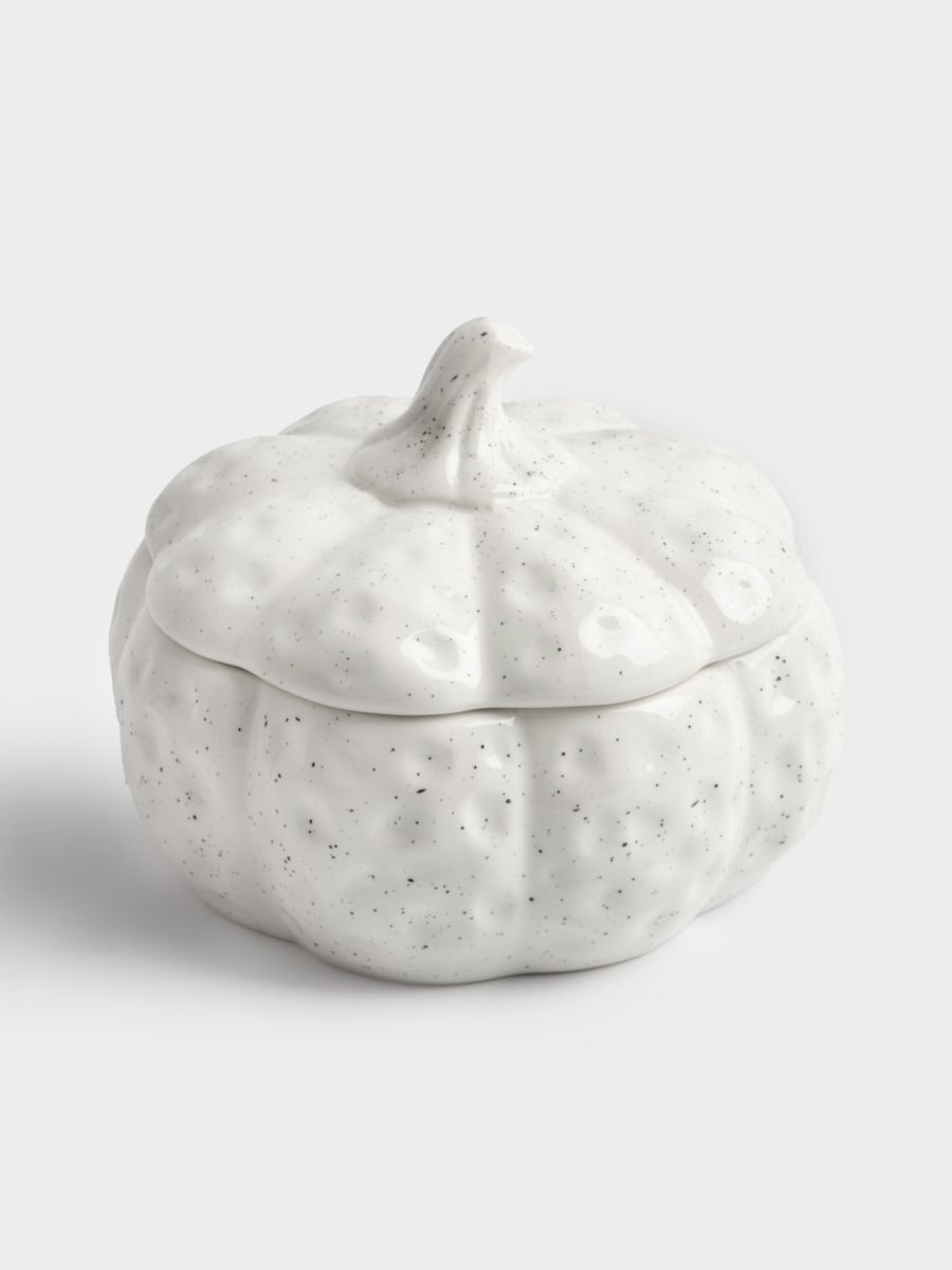 Эта стильная емкость для хранения привнесет в ваш стол атмосферу осени и природной гармонии. Изображение белой тыквы, придаёт блюду утончённый и современный вид.