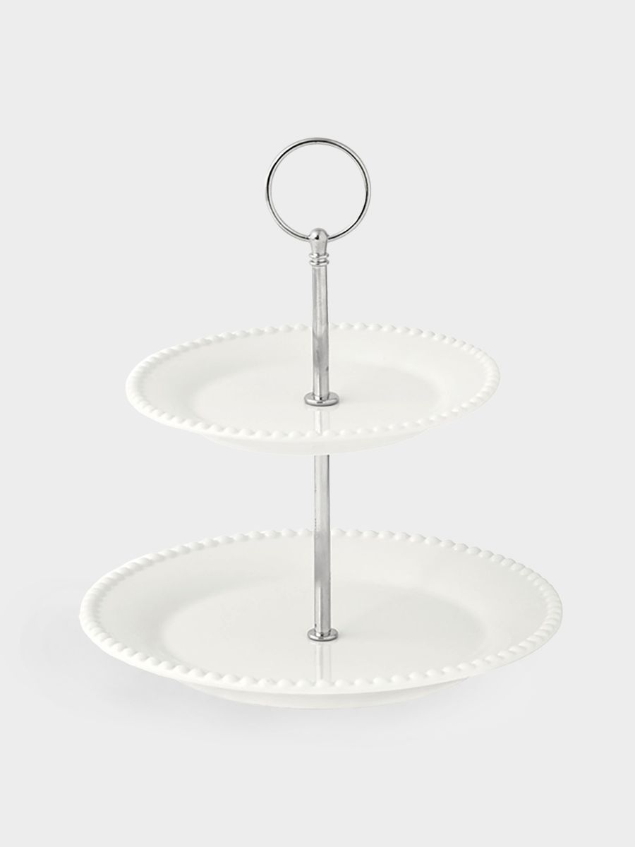 Двухъярусная этажерка для сервировки — это элегантное решение для эффектной подачи. Она позволяет красиво разместить десерты, закуски или фрукты, создавая привлекательную композицию.
