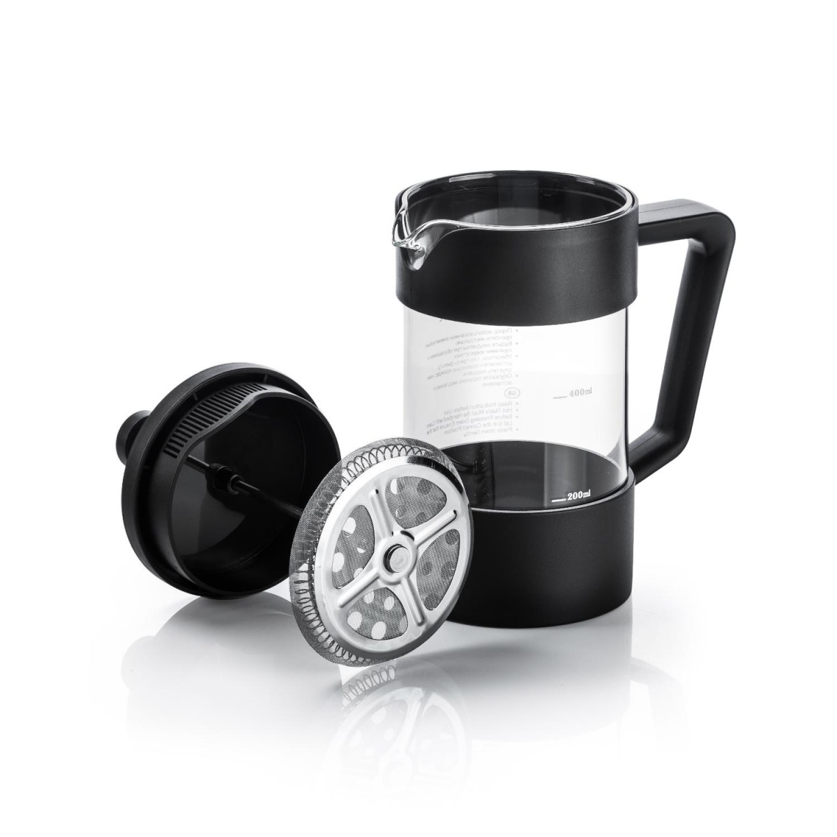 Усовершенствованный пресс-механизм: навитая пружина способствует более плотному прилеганию краев фильтра к стенкам колбы и предохраняет его от деформации. Оптимальный размер ячеек фильтра обеспечивает идеальную фильтрацию напитка.Удобная ненагревающаяся бакелитовая ручка.Благодаря теплоизоляционным свойствам устойчивое основание защищает поверхность от повреждений.Разборная конструкция френч-пресса облегчает уход.