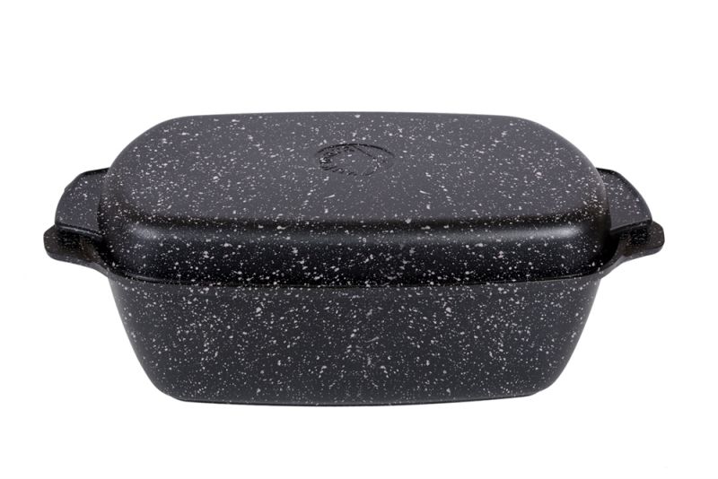Гусятница – это универсальная кастрюля прямоугольной формы с плоской крышкой-сковородой. В такой посуде особенно удобно готовить крупные куски мяса или птицу целиком. Благодаря возможности использования посуды в духовом шкафу, можно тушить блюда с сохранением влаги под закрытой крышкой, либо запекать их, добиваясь хрустящей корочки. Гусятницу также можно использовать на плите как обычную кастрюлю для варки и тушения на небольшом и среднем огне – благодаря прекрасным теплораспределительным свойствам алюминия она равномерно прогреваются по всему корпусу.