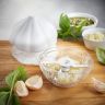Благодаря трем лезвиям, изготовленным из высококачественной нержавеющей стали, и встроенному шпателю. Оригинальный внешний вид прибора в виде головки чеснока сопровождается противоскользящим основанием для удобства использования.