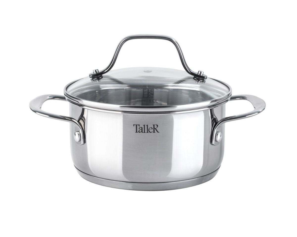 Ручки на клепках. Есть отметки литража.Кастрюля подойдет для приготовления обедов и ужинов для небольшой семьи, а лаконичный дизайн будет гармоничен на любой кухне. Подходит для мойки в посудомоечной машине. Нельзя использовать в духовом шкафу, подходит для всех типов плит (в т.ч. индукционной).