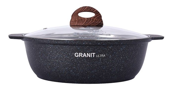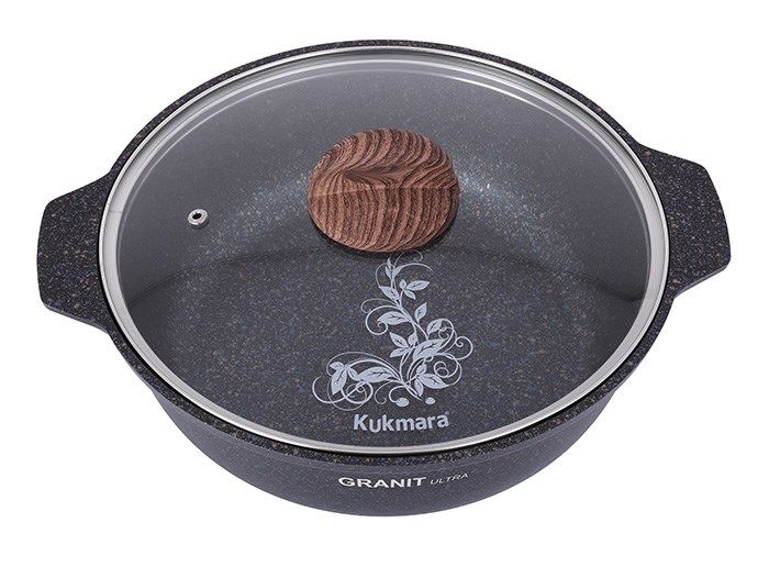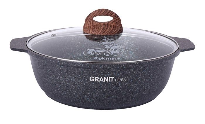 Кастрюля-жаровня "Kukmara" изготовлена из литого алюминия и покрыта уникальным ультрапрочным антипригарным покрытием «Ultra granit». «Ultra granit» - это невероятно прочное покрытие, усиленное сверхтвердыми минералами нового поколения, близкими по твердости алмазу. Благодаря особой технологии прочность покрытия позволяет использовать даже металлические кухонные принадлежности, не боясь повредить поверхность. Покрытие «Ultra granit» продлевает срок службы посуды более чем в 7 раз!