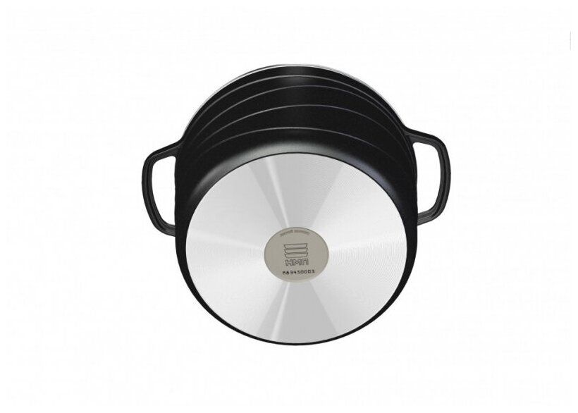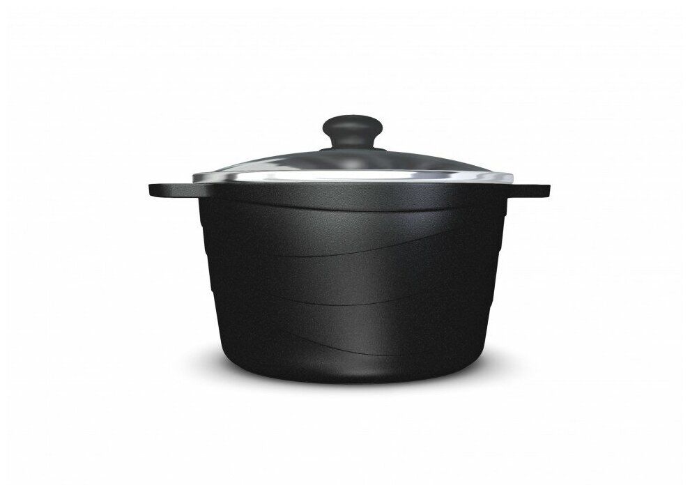 Кастрюля НМП "Каменная" Черный гранит, со стеклянной крышкой 4л, Кастрюля из литого алюминия многофункциональна и удобна в эксплуатации, в ней можно варить, жарить, тушить, томить, пассеровать и запекать. Тепло в кастрюле распределяется равномерно, а пища подвергается термической обработке постепенно, не пригорая и не прилипая к поверхности посуды. Кастрюля имеет современный прямой корпус из литого алюминия с уникальным геометрическим рисунком «волна». Качественное антипригарное покрытие с эффектом натурального камня «Черный гранит» позволяет избежать пригорания продуктов даже без использования масла.