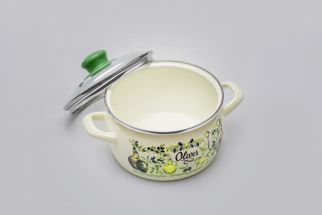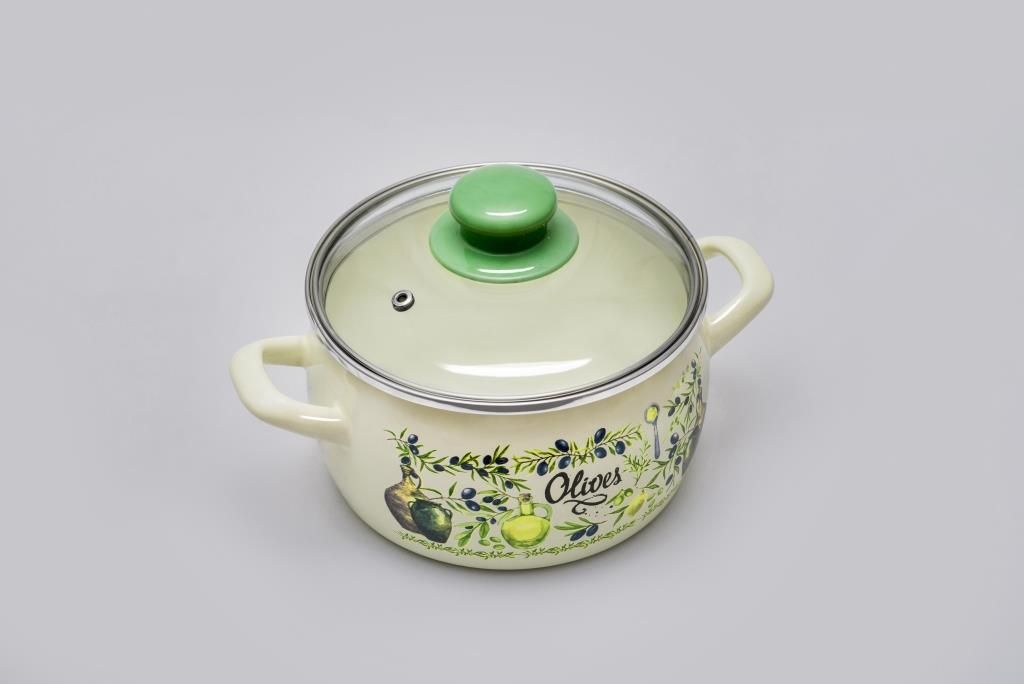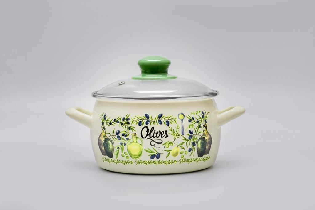 Кастрюля глубокая эмалированная со стеклянной крышкой из коллекции "Олива", 3 л