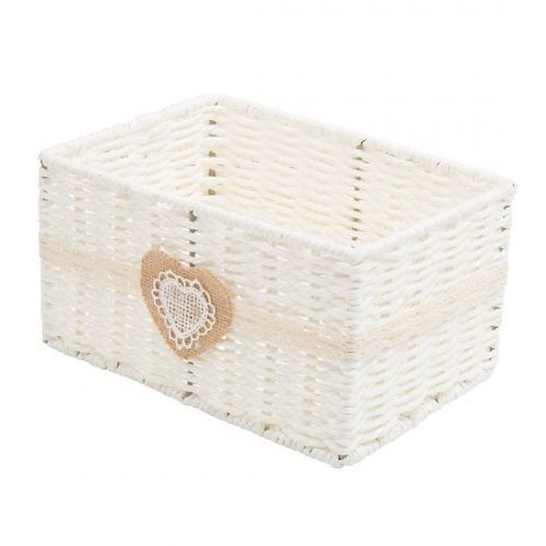 Вместительная стеллажная корзина "Сердечко" от Handy Home сплетена из бумажного шпагата актуального белого цвета и украшена светло-бежевой кружевной тесьмой.