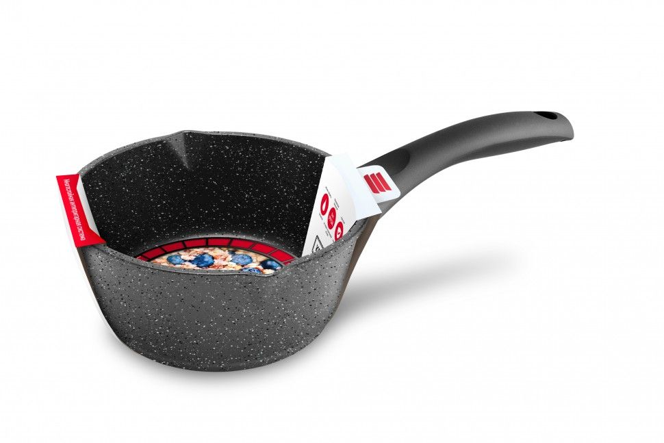 Удобная форма и объем 1,7 л позволяют использовать ковш для любых кулинарных экспериментов – для сложных соусов и вкусных каш, для небольших порций как мини-кастрюлю, для подготовки десертов и горячих напитков. Тепло в ковше распределяется равномерно, а пища подвергается термической обработке постепенно, не пригорая и не прилипая к поверхности посуды. Два носика для слива обеспечивают удобство использования.