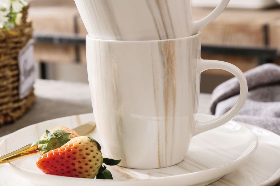 Сдержанная и классическая коллекция, которая впишется в любой интерьер. Декорирована нежными бежевыми и серыми линиями, которые образуют рисунок, напоминающий уникальный, неповторимый узор мрамора Каррара.идеально подходит как для повседневной, так и для торжественной сервировки, и станет достойным украшением кухни. Она придает оформлению стола особенно изысканный, благородный вид и создает атмосферу праздника