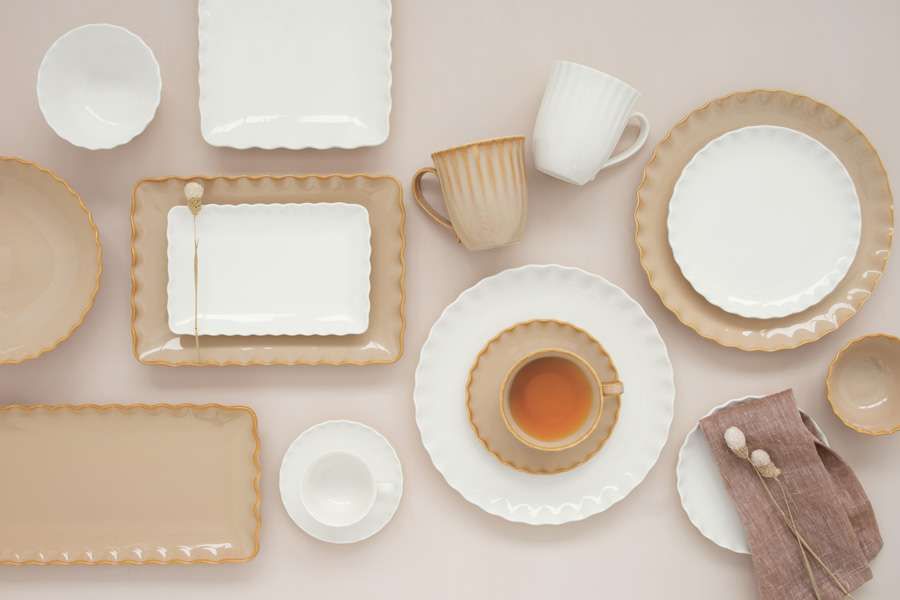 Onde коллекция фарфора представлена в двух цветах: молочный и песочный.