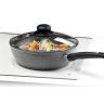 Крышка изготовлена из стекла, её можно мыть в посудомоечной машине, но из-за пластиковой ручки нельзя использовать в духовых шкафах.