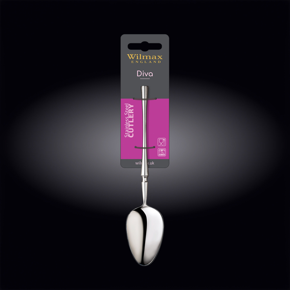 Ложка изготовлена из высококачественной нержавеющей стали марки 18/10. Приборы Wilmax прочны и устойчивы к коррозии, деформации и притуплению, а также к образованию пятен на их поверхности, вызванных воздействием щелочей и кислот. Легко моются, сохраняя при этом яркий, привлекательный внешний вид, а также подходят для посудомоечных машин.