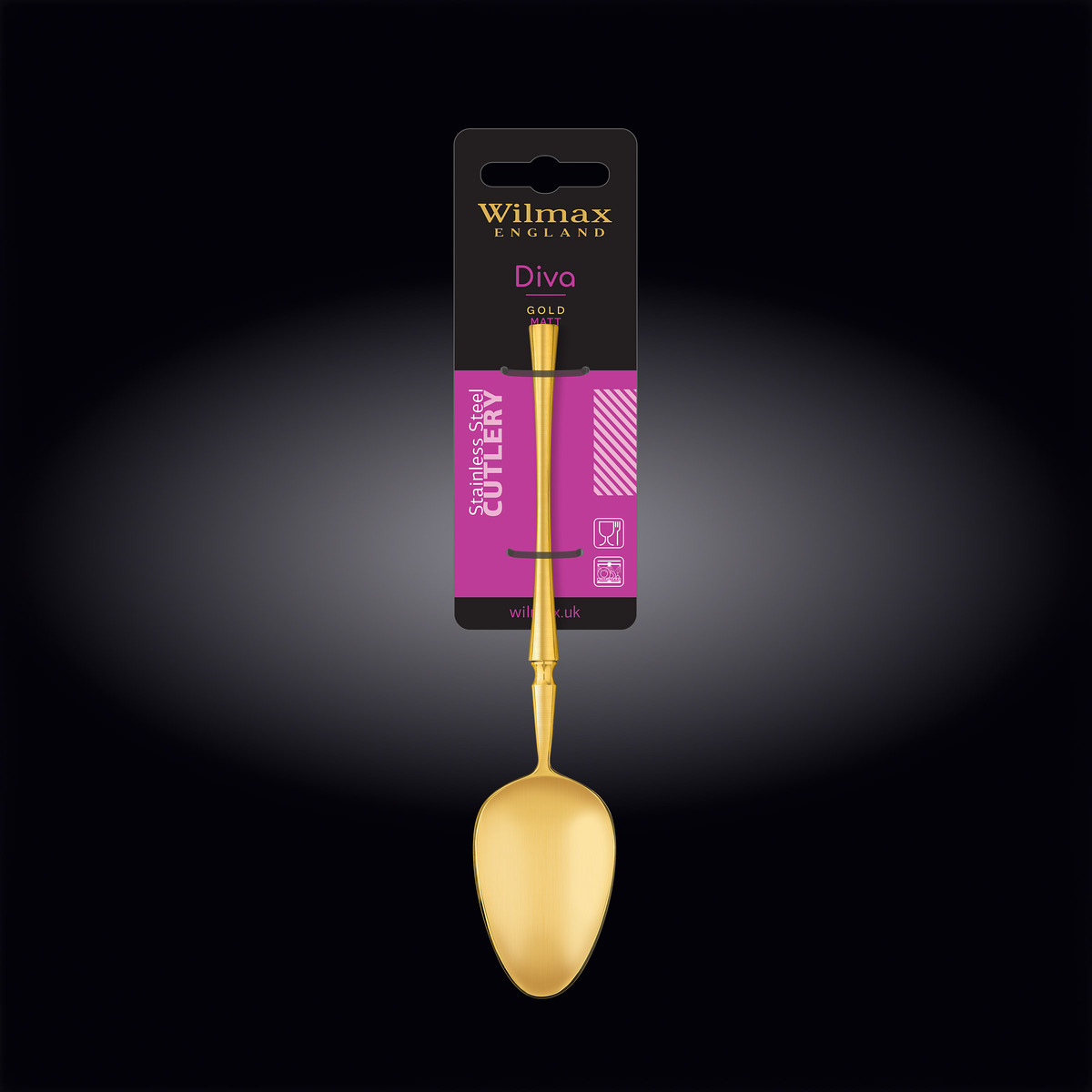Ложка изготовлена из высококачественной нержавеющей стали марки 18/10. Приборы Wilmax прочны и устойчивы к коррозии, деформации и притуплению, а также к образованию пятен на их поверхности, вызванных воздействием щелочей и кислот. Легко моются, сохраняя при этом яркий, привлекательный внешний вид, а также подходят для посудомоечных машин.