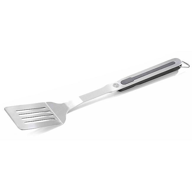 Лопатка для переворачивания мяса на гриле изготовлена из нержавеющей стали и идеально подходит для любых видов не только мясных блюд, но и рыбы и овощей. Удлиненная (50 см) рукоятка убережет вас от опасности обжечься. Через отверстия на лопатке стекает лишний жир. Оснащена петлей для подвешивания.