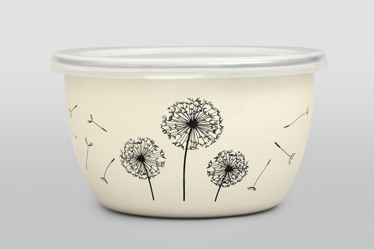 Миска эмалированная без ручек с пластиковой крышкой, 1.7 л.