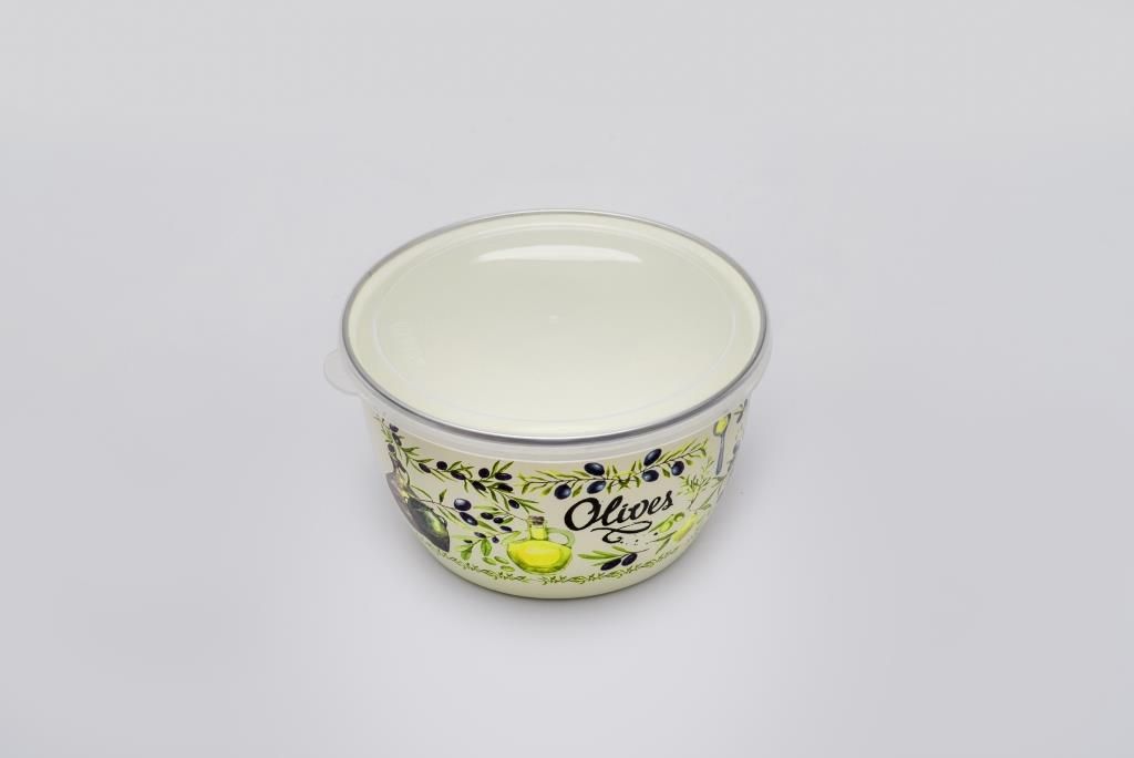 Миска эмалированная без ручек с пластиковой крышкой из коллекции "Олива", 1.75 л