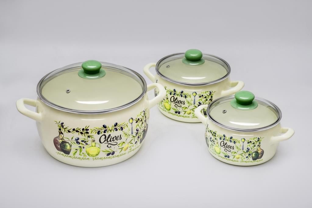 Набор кастрюль METROT "Олива"( 2,2 литра, 3,0 литра и 5,3 литров)