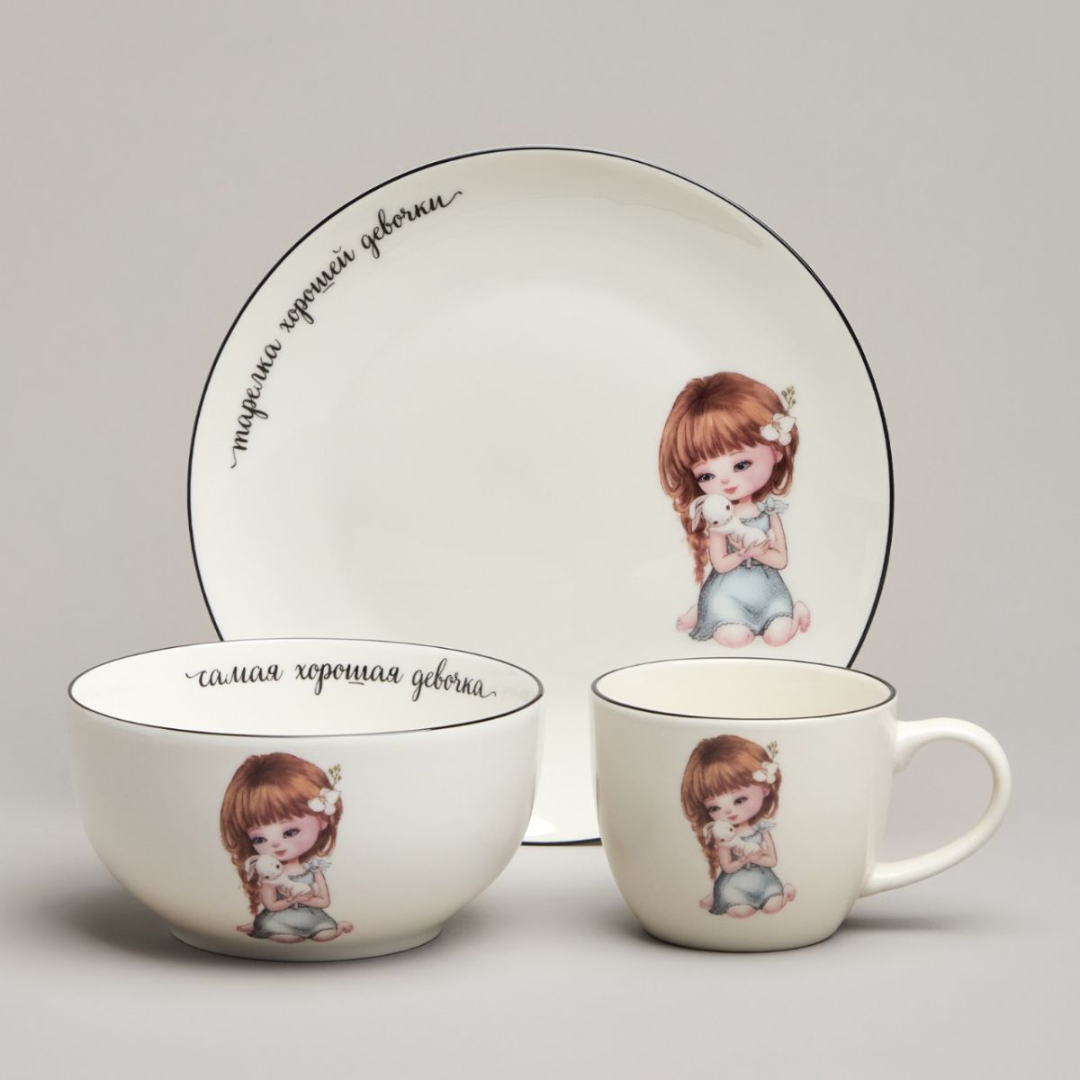 Набор детской посуды выполнен из фарфора и декорирован милым рисунком. Привычная еда покажется вкуснее, когда процесс приема пищи сопровождается игрой и сказками. Красочная посуда - залог хорошего настроения и аппетита вашего малыша!