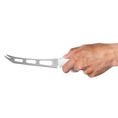 Нож для сыра Tramontina Athus, имеет лезвие из нержавеющей стали специальной формы с прорезями. Пилообразная режущая кромка идеально справляется даже с твёрдыми сортами сыра. Рукоять выполнена из качественного полипропилена.