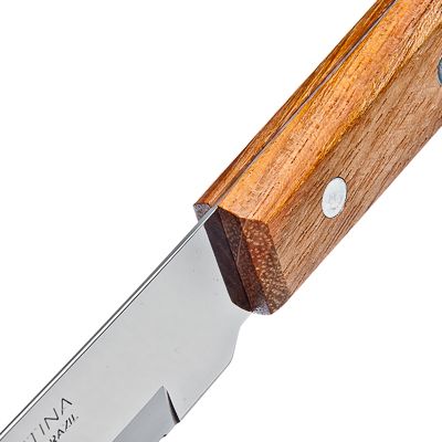 Простой кухонный нож от серии Tramontina Universal. Простая деревянная рукоять и качественная сталь делают данный нож идеалом для работы. Прекрасный нож для разделки мяса. Длина лезвия: 200 мм.