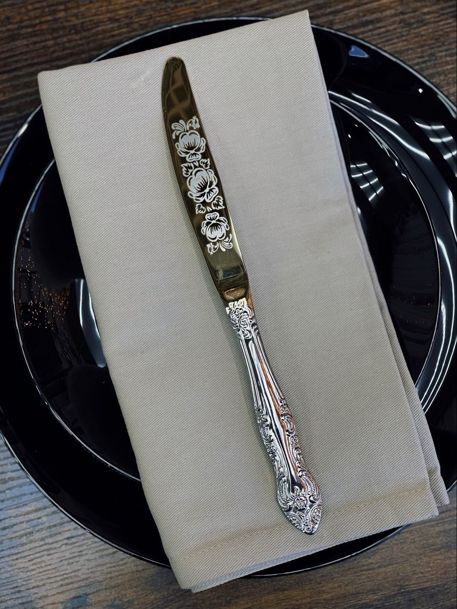 Художественная роспись с покрытием. Столовый нож служит настоящим украшением стола, задает тон застолью и является незаменимой частью любой трапезы.