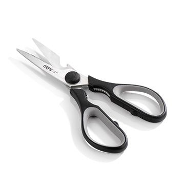 Универсальные ножницы, дополнительно оснащенные открывалкой для бутылок со свинчивающимися крышками. Подходят для свинчивания крышек диаметром до 30 мм.