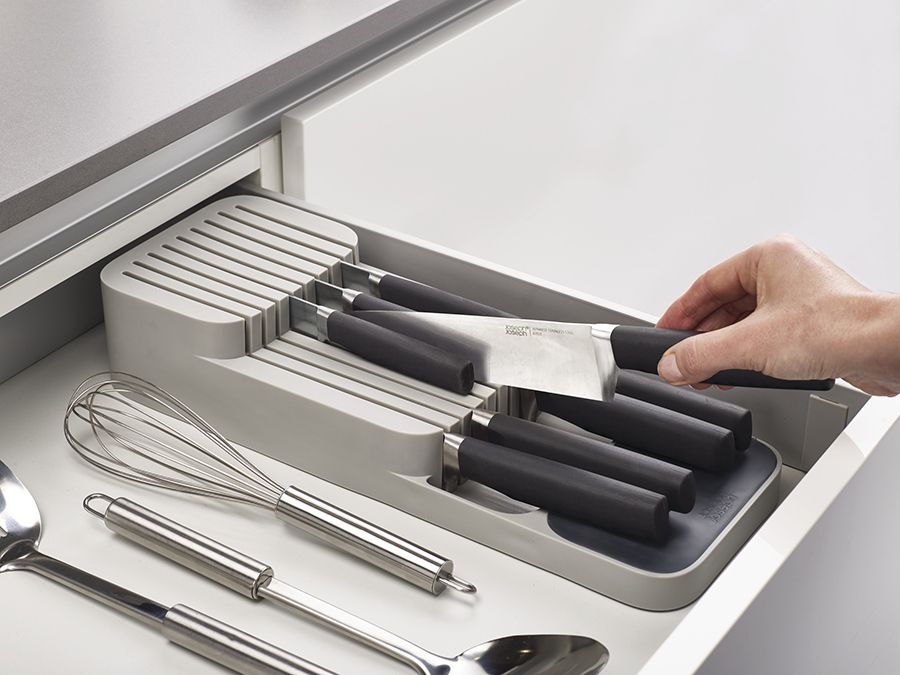 Органайзер для кухонных ножей поможет сэкономить место для хранения. занимает гораздо меньше места, чем обычные модели такого типа, и открывает новые возможности по организации пространства для хранения кухонной утвари. Отлично дополняет органайзер для столовых приборов DrawerStore.