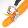 Овощечистка оснащена двумя ножами для удаления "глазков" и червоточин. Эргономичная рукоятка овощечистки удобна для очистки как правой так и левой рукой