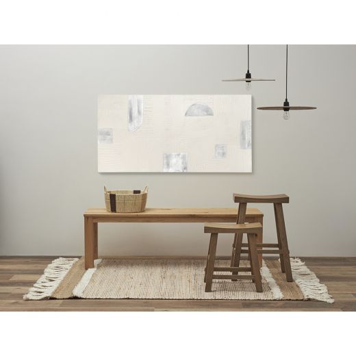 Ручная роспись делает каждое панно уникальным. Сочетание таких материалов, как дерево и ткань обеспечивает изделию долговечность и отлично комбинируется с различными интерьерными решениями. Декор в минималистичном стиле идеально подходит для оформления пространств с современным дизайном