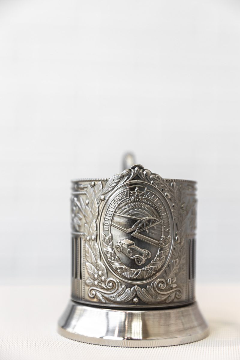 Подстаканник "Почетному Дорожнику" из мельхиора.