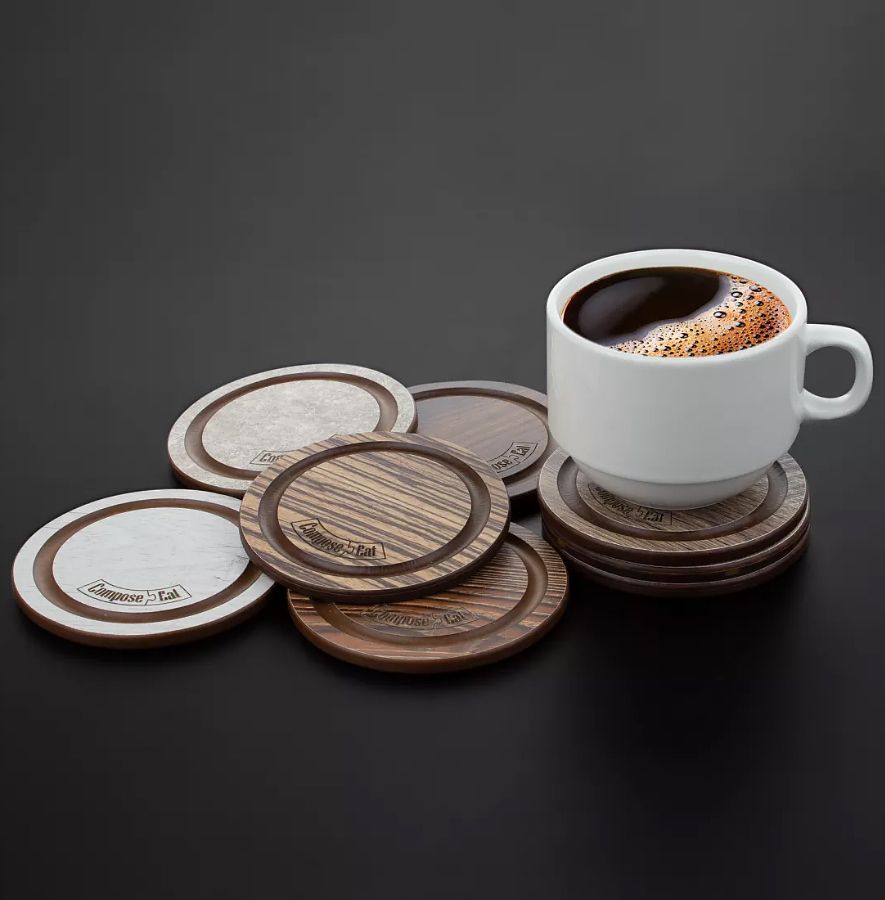 Подставка под кружку выполнена из бумажного композитного материала, сохраняющего целостность при падении, ударах и механической нагрузке, устойчивого к резким перепадам температур, не подверженному деформации, выцветанию, сколам, трещинам и механическим повреждениям.