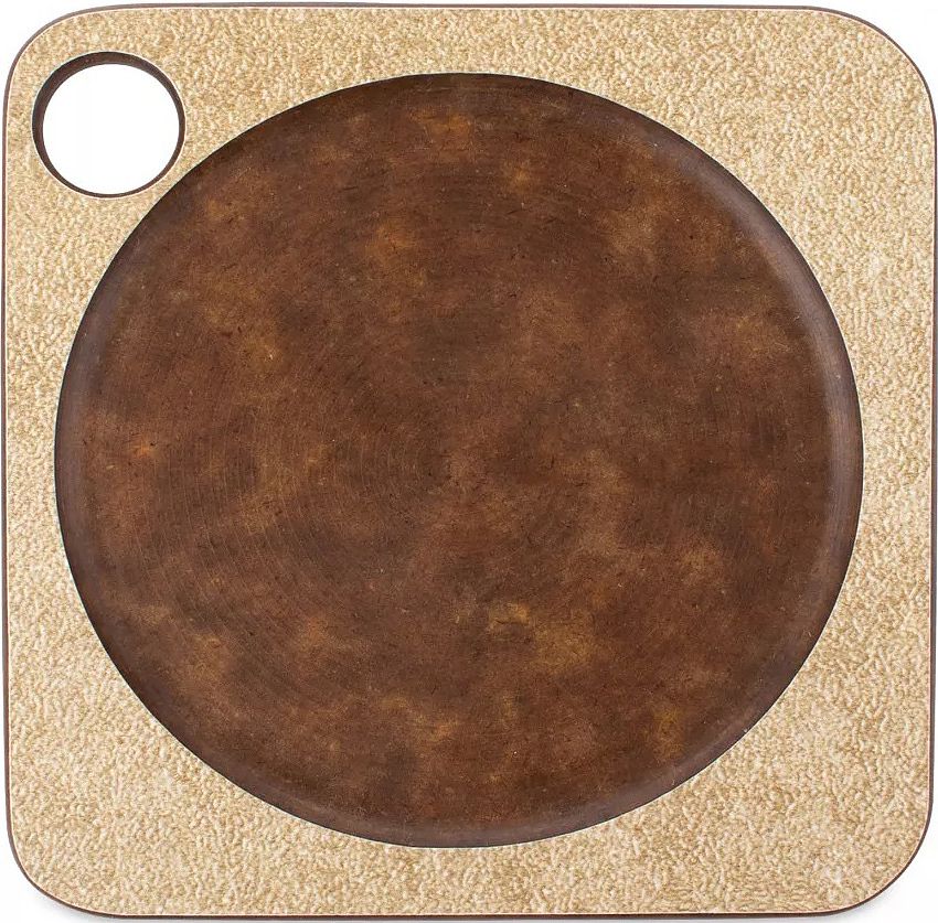 Изделие квадратной формы выполнено из многослойного композитного материала на основе крафтовой бумаги с поверхностью цвета кремовый порфир и круглой выемкой на внутренней стороне изделия
