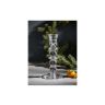 Данный стильный подсвечник станет идеальным украшением романтического или праздничного ужина. Филигранно выполненное изысканное изделие красиво переливается на свету и создаёт блики, благодаря которым в помещении создаётся атмосфера гармонии, комфорта и уюта. Подсвечник, изготовленный из стекла, рассчитан на одну классическую свечу. Благодаря сочетанию гладкой поверхности, резных форм и граней декоративный предмет хорошо впишется в разный интерьер: от классики до модерна.