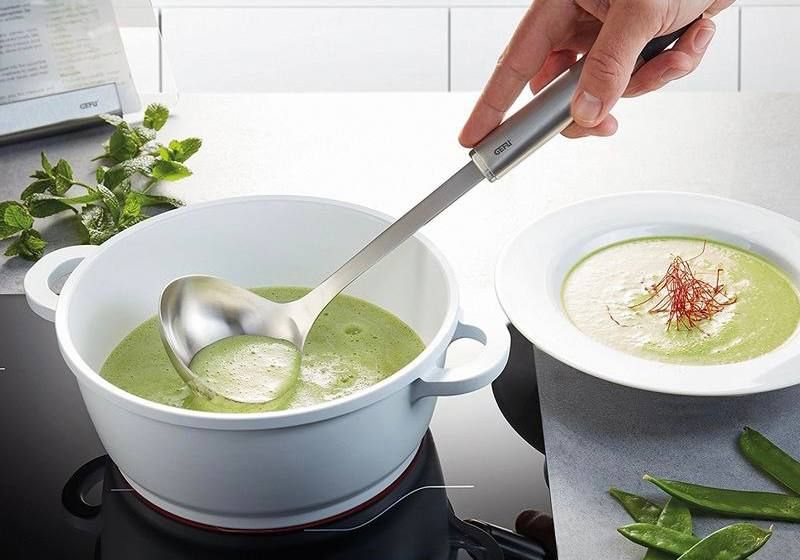 Удобный половник поможет формировать порции супа, каши, блинного теста, варенья и прочих жидких продуктов.