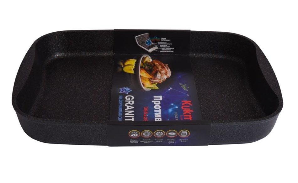 Противень "Kukmara" изготовлен из литого алюминия и покрыта уникальным ультрапрочным антипригарным покрытием «Ultra granit».
