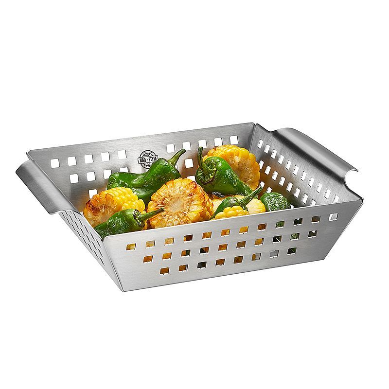 Противень для гриля с отверстиями предназначен для приготовления блюд на огне. Вкусные блюда, такие как овощи, мелкие морские гребешки или другие морепродукты, готовятся быстро и полезно на противне из нержавеющей стали. Вентиляционные отверстия в противне-гриль для барбекю пропускают горячий воздух от углей, который прожаривает пищу, придавая ей неповторимый вкус гриль.