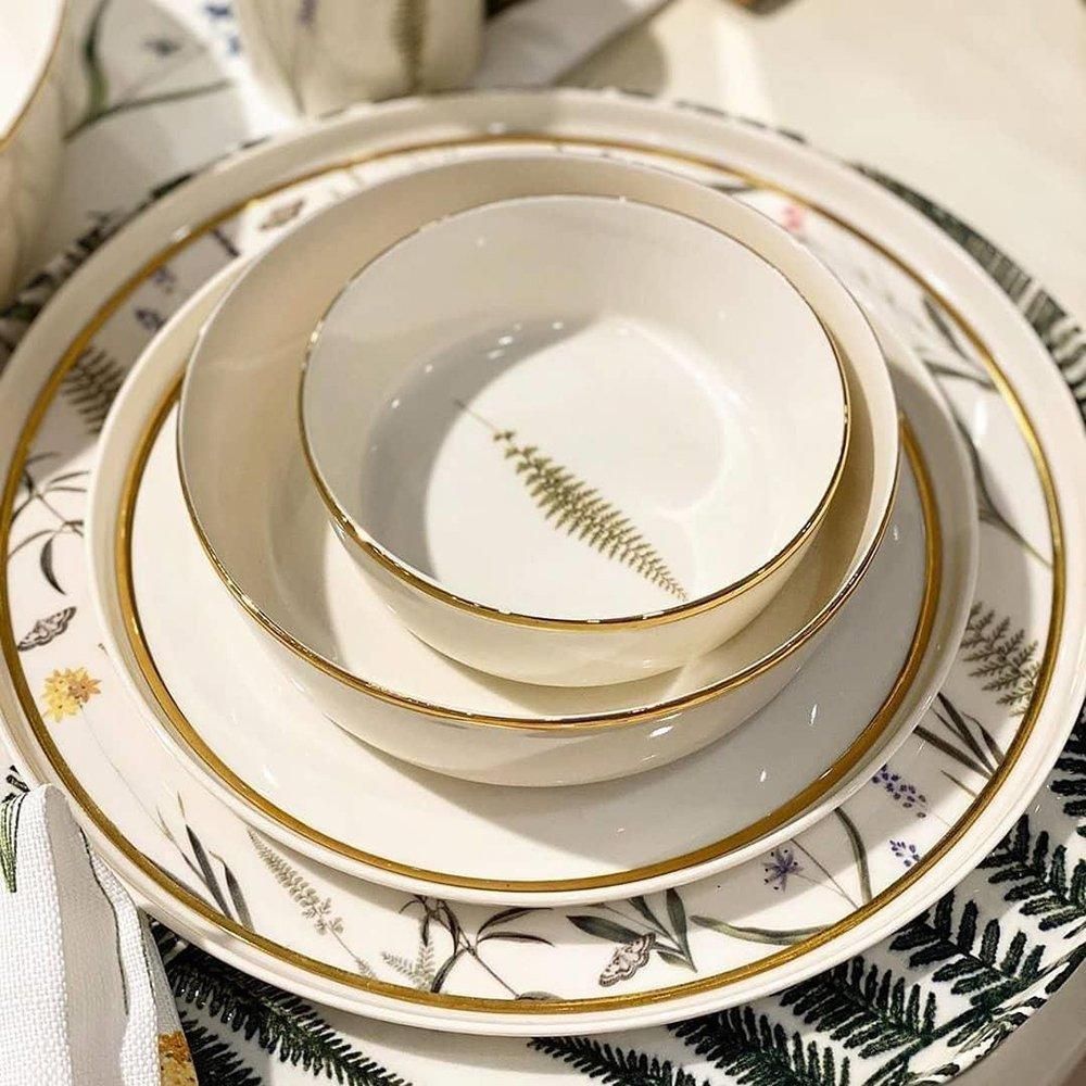 Коллекция Botanical идеально впишется в современный и классический интерьер, и создаст богатую праздничную атмосферу на столе!Восхитительный рисунок растений и цветов на каждом изделии создают уют и теплую обстановку на вашем столе. Ботанические мотивы, которые отражают атмосферу природы в дизайне этой коллекции превосходно вписались в современные формы фарфора.Богатый внешний вид коллекции Botanical придает золотая кайма, которая шикарно переливается на свету. А идеально ровные круглые и овальные формы этой коллекции делают ее еще более элегантной.Такие узоры, как фиалка, лаванда и бабочка из коллекции Botanical, сделают Ваш стол настоящим праздником. Он оживит Ваше жилое пространство своей естественной формой