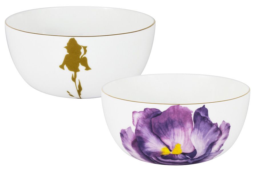 Удобные и современные формы предметов из белоснежного костяного фарфора и натуральный яркий цветочный декор с изображением мака, миддлемиста, гибискуса, ириса, магнолии, стрелиции, камелии и гортензии в сочетании с цветами из матового золота, тонкая золотая отводка — всё говорит о стиле в сервировке и культуре чаепития.