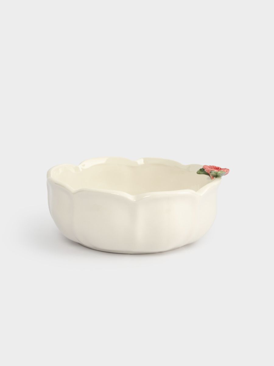 Салатник с изящным цветочным декором — это сочетание красоты и функциональности на вашем столе. Нежный цветок придаёт посуде лёгкость и свежесть, превращая обычную трапезу в маленький праздник эстетики.