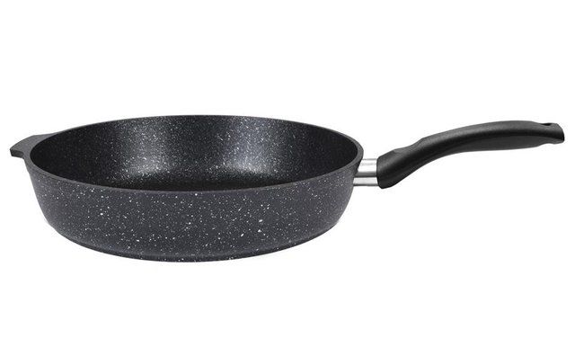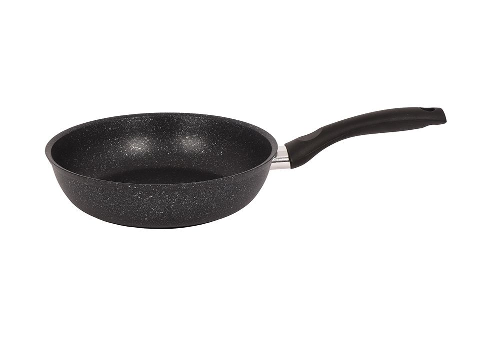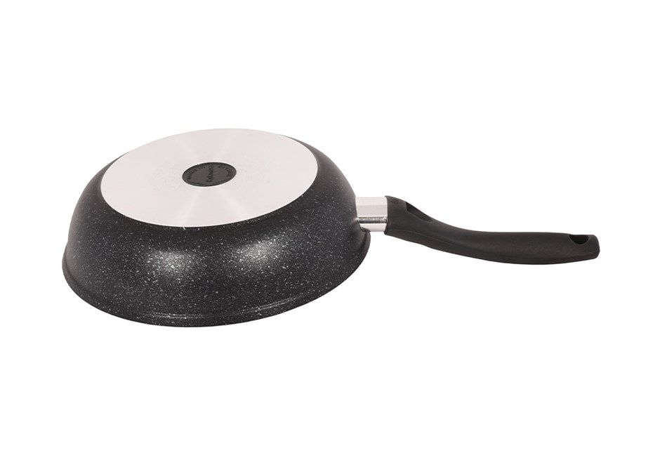 Сковорода "Kukmara" изготовлена из литого алюминия и покрыта инновационным антипригарным мраморным покрытием нового поколения на водной основе, усиленным сверхтвердыми частицами минералов.