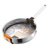 - Благодаря особенности крепления ручек к корпусу площадь контакта ручки и корпуса минимальна,поэтому ручки нагреваются значительно меньше и медленнее и быстрее остывают после окончания процесса приготовления
