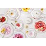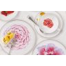 Удобные и современные формы предметов из белоснежного костяного фарфора и натуральный яркий цветочный декор с изображением мака, миддлемиста, гибискуса, ириса, магнолии, стрелиции, камелии и гортензии в сочетании с цветами из матового золота, тонкая золотая отводка — всё говорит о стиле в сервировке и культуре чаепития.