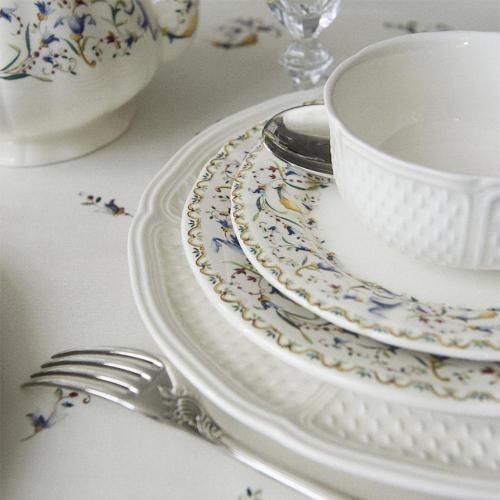 Нежность пасты позволяет создать изделия с самым тонким рельефом: орнамент в виде завитков, ручки в форме артишока и знаменитый мелкий разбросанный орнамент в виде зернышек риса. Совершенство исполнения, требующее высокого мастерства. Белая эмаль, разработанная профессионалами лаборатории Gien. Легко сочетается с предметами других коллекций посуды Gien