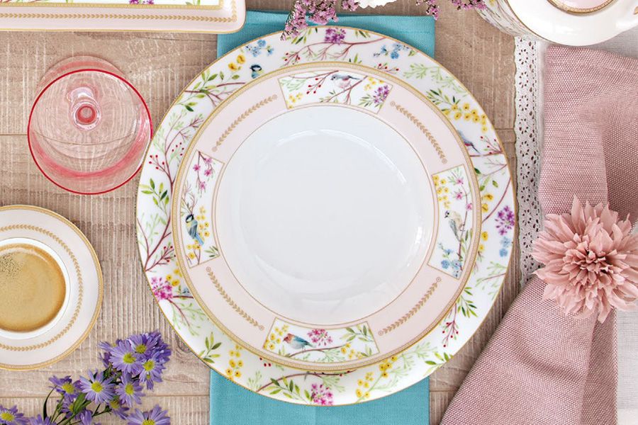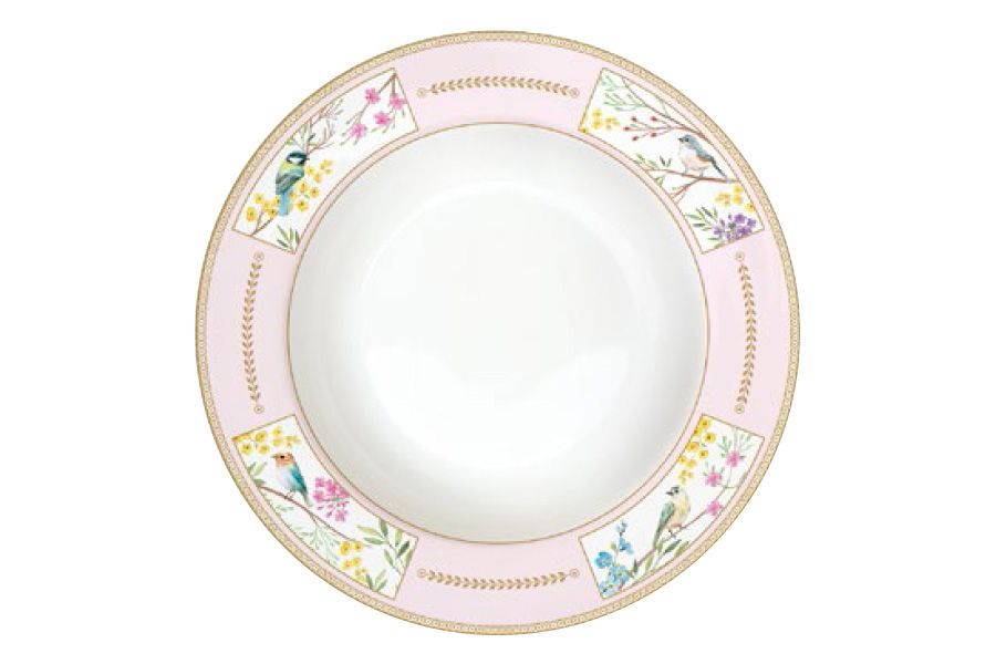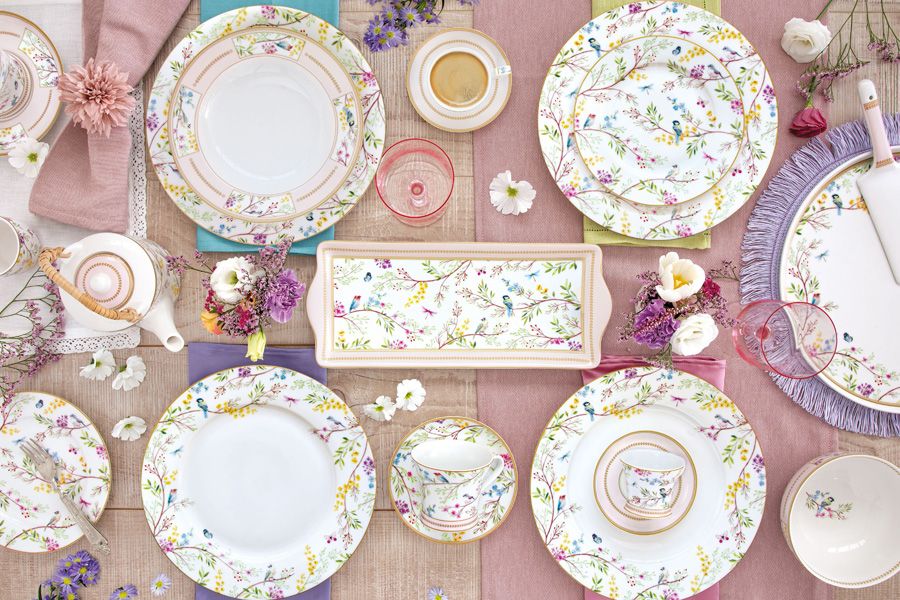 В линейку Пение птиц входят элегантные, утонченные блюда, тарелки, салатники, чашки с блюдцами, кружки, а также другая столовая посуда и предметы сервировки, изготовленные из прочного белого фарфора с износостойким глазурованным покрытием. Изделия имеют изящные формы, напоминающие силуэты предметов из коллекции Цветочный карнавал – одной из наиболее успешных и популярных серий бренда. Восхитительный цветочный декор с миниатюрными птичками выглядит нетривиально и оставляет приятное «послевкусие».